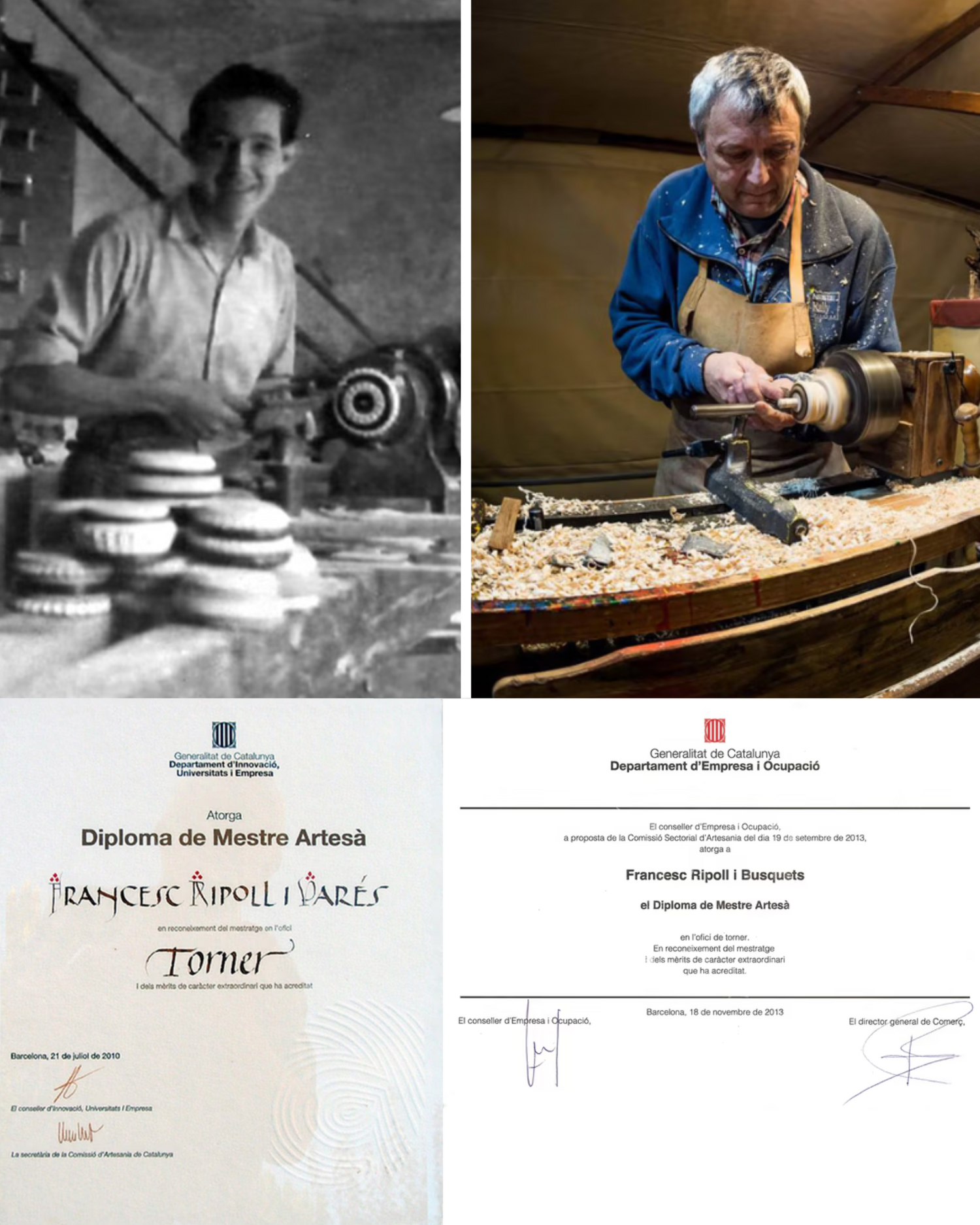 Por todo eso, y en reconocimiento a toda esta larga trayectoria, el año 2010 se le otorgó el diploma de Maestro Artesano por el Departamento de Innovación, Universidades y Empresa de la Generalitat de Catalunya a mi abuelo Francesc Ripoll Parés y el año 2013, a mí padre Francesc Ripoll Busquets.